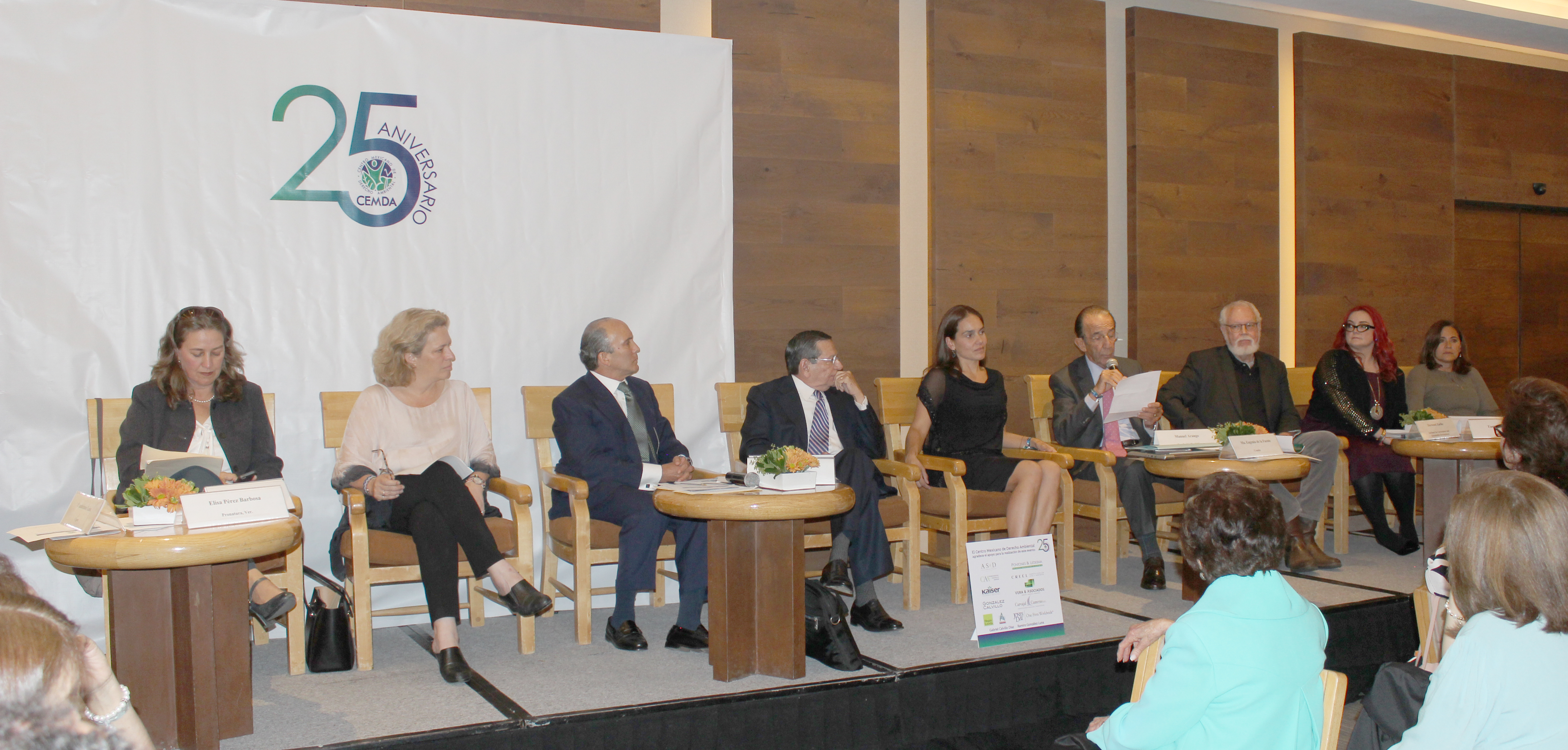 En el presídium estuvieron también María Eugenia de la Fuente, presidenta del Consejo Directivo de CEMDA; Gabriela Anaya, asesora en México de la David and Lucile Packard Foundation; Cuauhtémoc León, director general del  Centro de Especialistas en Gestión Ambiental (Cegam); Tania Mijares, abogada y ex colaboradora de Cemda; Elisa Pérez Barbosa, directora de Pronatura, Veracruz; y Durwood Zaelke, presidente del Institute for Governance and Sustainable Development.